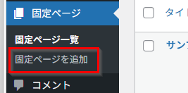 WordPress管理画面 → 「固定ページ」→ 「固定ページを追加」でページを作成。